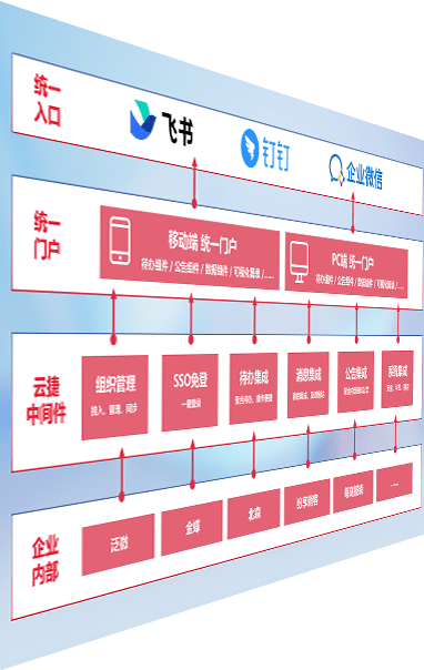 对协作平台提供支持服务,,支持企业应用与协作平台对接,,包含组织同步、、、、消息集成、、待办集成等。。支持目前主流的协作平台:钉钉、、企微和飞书。。